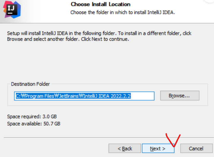 - 설치 경로 지정 후 Next 클릭