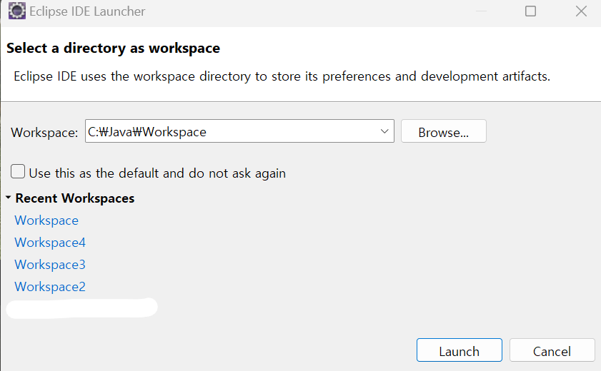 다른분들은 로딩하는 멋진 화면 뜨는데 저는 workspaces 선택때문에 안ㄸㅓ요.