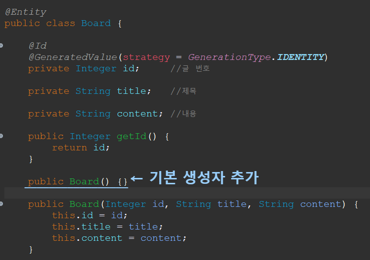 no default constructor for entity 이란 에러를 만나게 되는데..