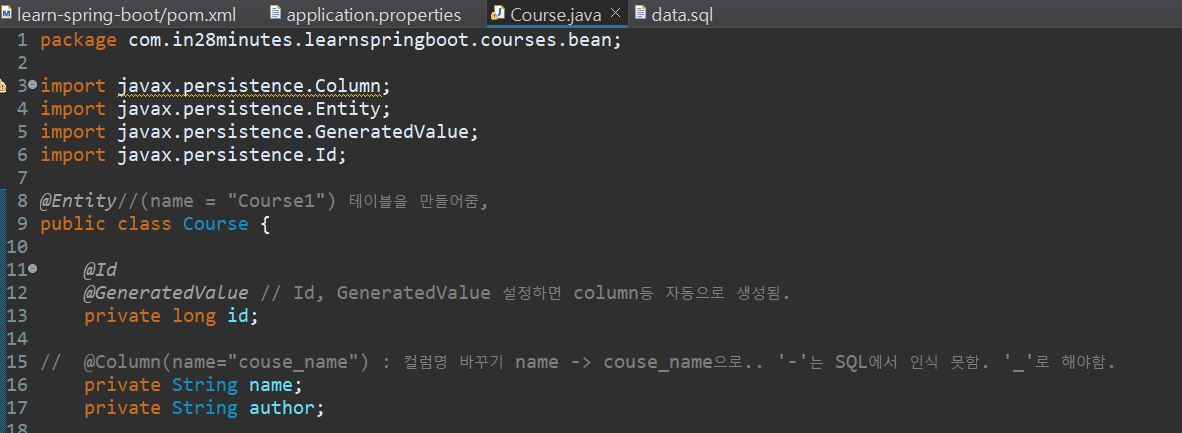 @ Id , GeneratedValue : 멤버변수와 데이터베이스를 매핑해주며, primary key설정 등