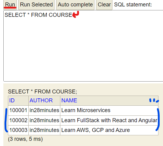 sql에서 insert했던 내용이 검색됨을 확인하실 수 있습니다.