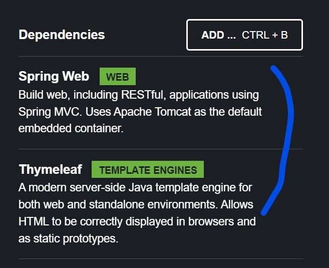 먼저 ADD DEPENDENCIES를 클릭을 하고 ,