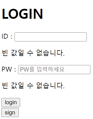 공백이 허용될 수 없는 필드 값에 공백 값이 들어 왔을 때 : "공백일 수 없습니다."
