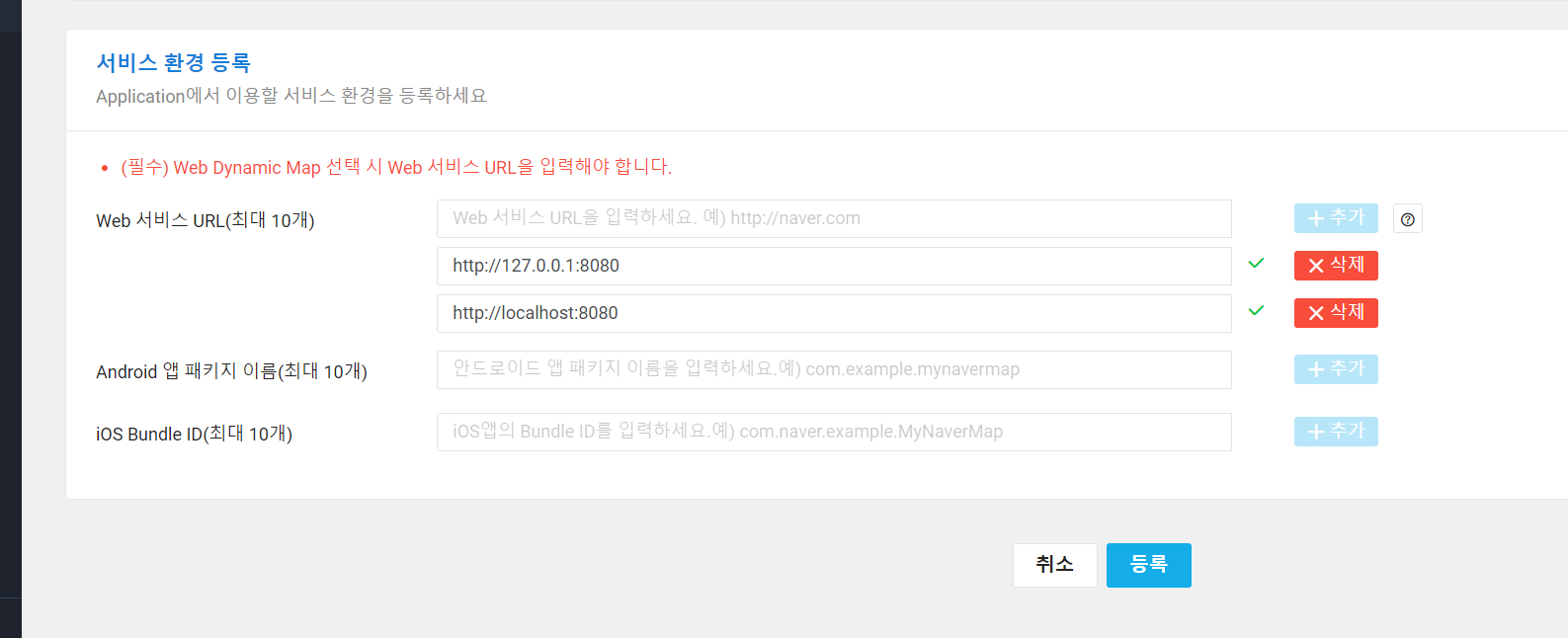 저는 로컬환경에서 해볼 예정이기 때문에 아래와 같이 주소 추가해주었습니다.
