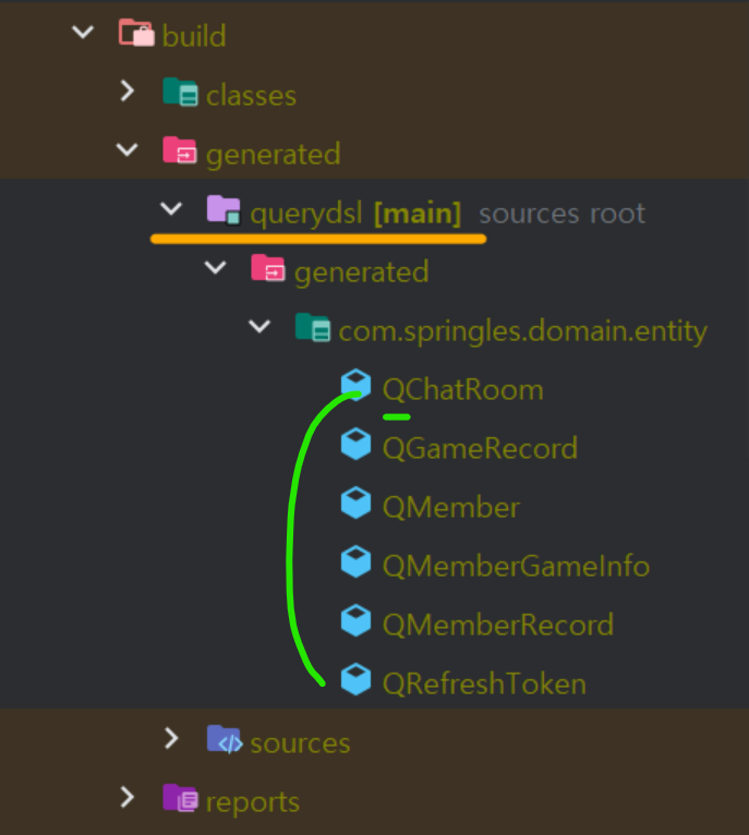 만약 잘 설정되었다면 build → generated 폴더안 Q 클래스가 생성되어 있을 것 입니다.