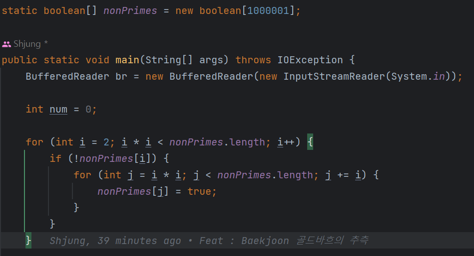 for (int j = i * i; j < nonPrimes.length; j += i) {