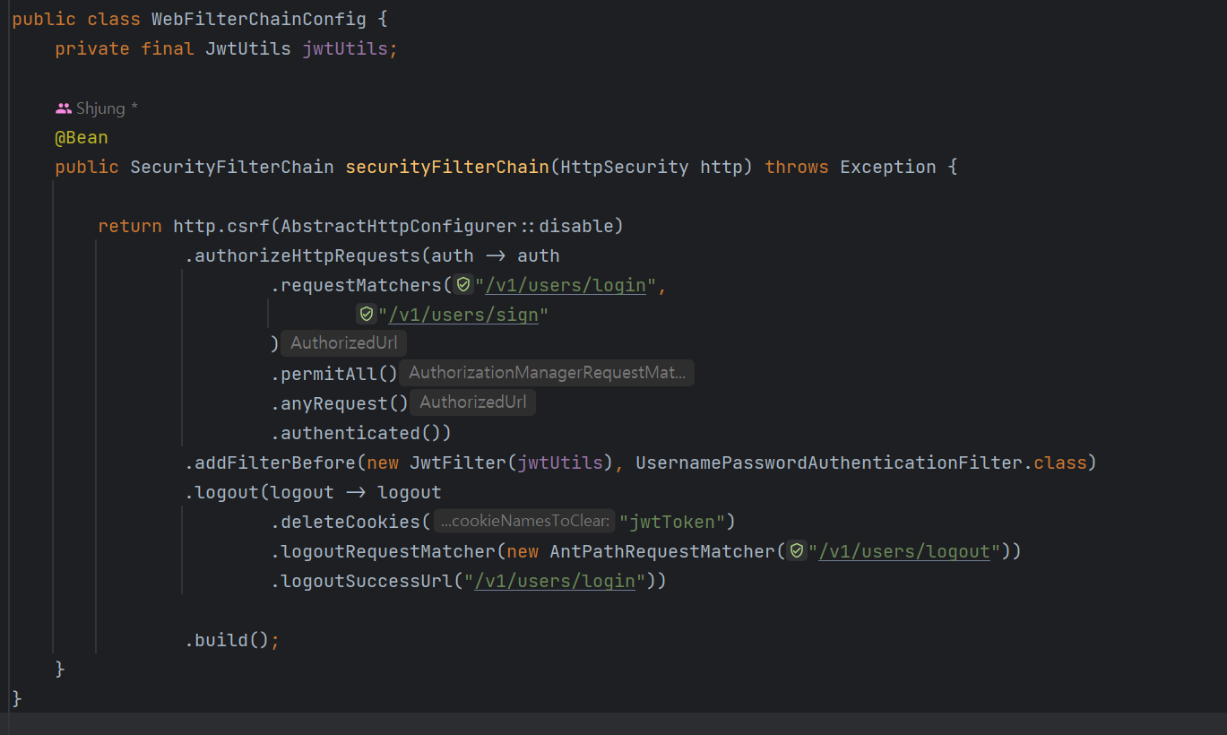 Security FilterChaninConfig 설정 전체 코드 ↓