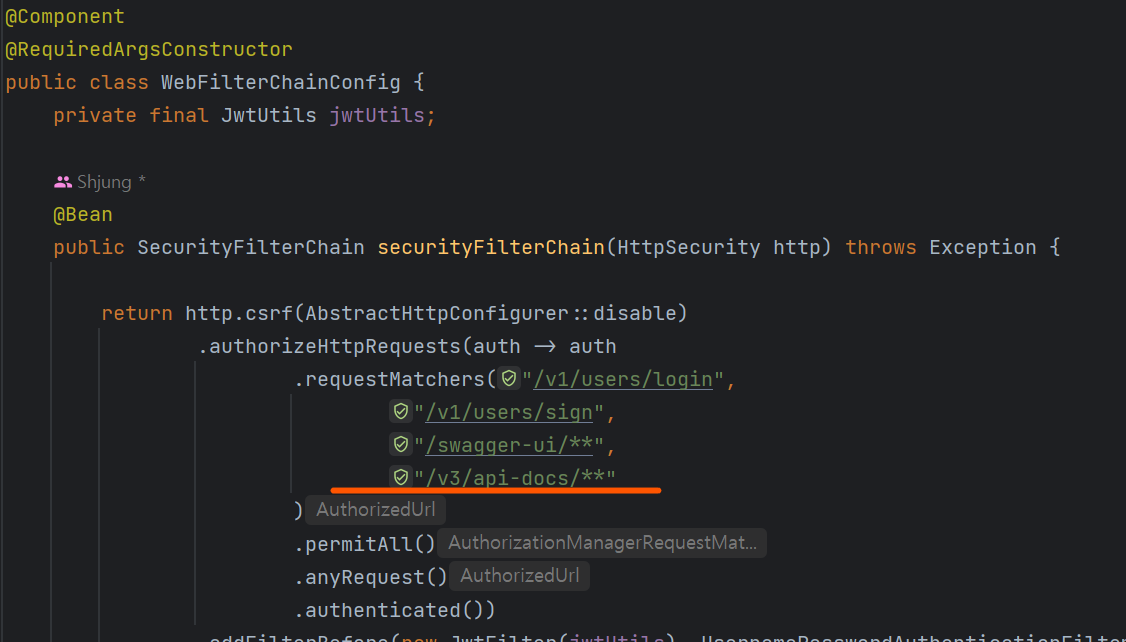 /v3/api-docs/** 를 추가해 보겠습니다.