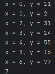 여기서 x와 y 가 어떤 값을 가지고 연산하여, 최종값을 도출하게 되는지 궁금해 아래 코드로 변경해 보았습니다.