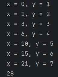 ... (생략)... 마지막 연산에서 x + y가 21 + 7로 28이 최종 return 됨.