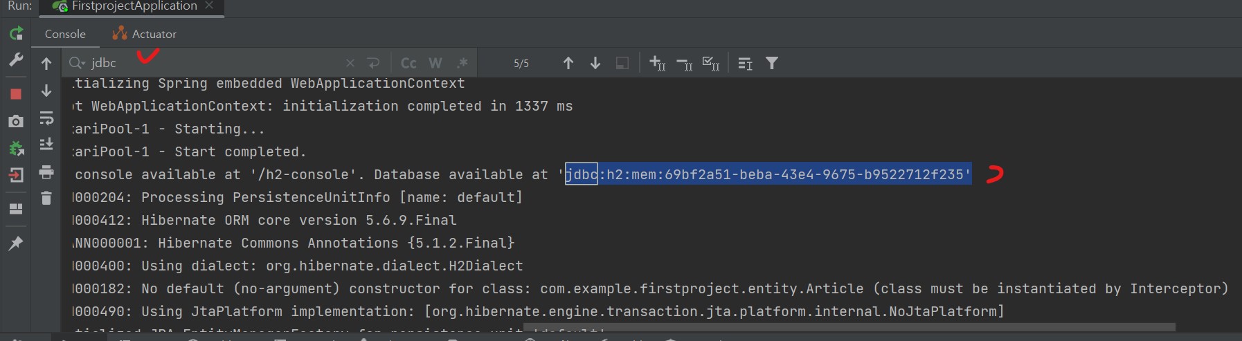 아래 그림과 같이 ' jdbc:h2:....... ' 라는 주소를 찾았다면 복사해줍니다.