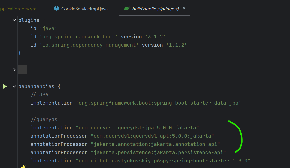 팀 프로젝트 시 Query DSL을 사용했었는데, 생각 했던것과 달리 gradle 설정이 많이 어려웠던게 기억이 납니다. 특히, Java11 버전의 Query DSL 설정과 차이가나 여러 글들을 참고했음에도 (무엇이 문제인지 잘 몰랐기 때문에..) 많은 에러를 만났었는데요.. ㅠㅠ 그래서 ! 이번 글에서는 Java17 과 SpringBoot 3.1.2 에서의 Query DSL 설정을 공유하려 합니다. gradle dependencies implementation 'com.querydsl:querydsl-jpa:최신 버전' JPA 엔터티에 대한 Querydsl 쿼리를 작성하고 실행하게함. annotationProcessor "com.querydsl:querydsl-apt:최신 버전" JPA 엔터티 클래스에..